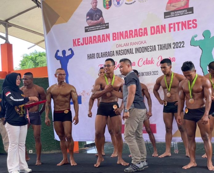 Olahraga – Sebanyak 15 Atlit Binaraga Asal Kabupaten Lamsel mengikuti kejuaraan binaraga, yang dilaksanakan di gedung kesenian Pekor Wayhalim Bandarar Lampung minggu (23/10).