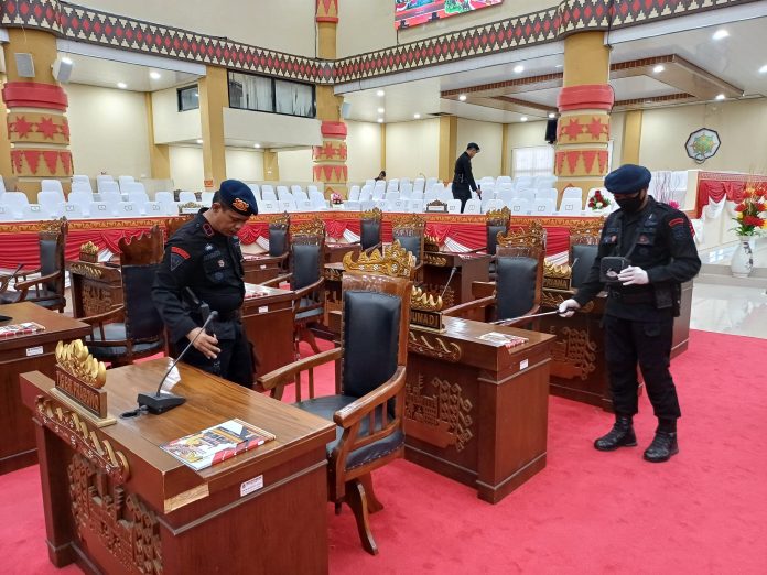 Skalapost – Dalam rangka pengamanan kegiatan pelantikan Dewan Legislatif DPRD Kota Bandar Lampung masa jabatan Periode 2024-2029 di Kantor DPRD Kota Bandar Lampung, Unit Jibom dikerahkan dibawah pimpinan langsung Kasubden II Jibom AKP Mantun Manik, pada Senin (19/8/24) lakukan sterilisasi lokasi pelantikan.