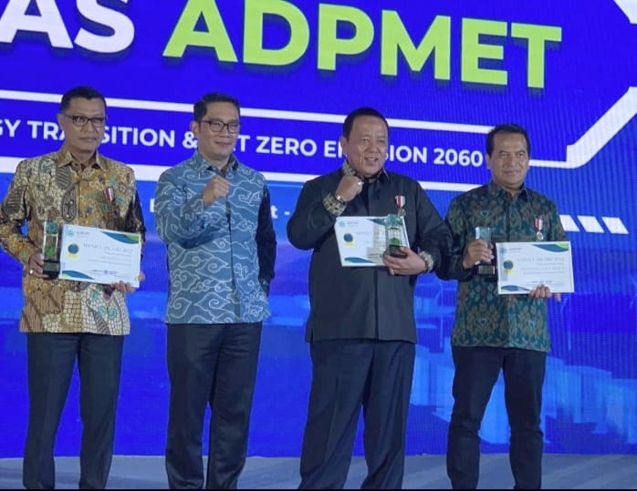 Gubernur Lampung Arinal Djunaidi menerima Penghargaan sebagai Provinsi dalam Kategori Optimisme Energi Terbarukan Dalam Bauran Energi RUED 2025, yang diberikan secara langsung oleh Ketua Umum Asosiasi Daerah Penghasil Migas dan Energi Terbarukan (ADPMET) Ridwan Kamil, pada kegiatan ADPMET AWARD 2022, di The Anvaya Beach Resort Bali, Rabu (09/11/2022).