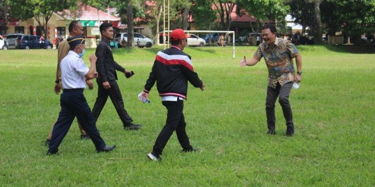 Sebelum melakukan peninjauan di lokasi pengembangan KJA danau ranau Lumbok Seminung, Gubernur Lampung dan rombongan terlebih dahulu melakukan transit di lapangan Indrapati Cakra Negara, komplek Perkantoran Pemerintah Kabupaten (Pemkab) Lampung Barat dan tiba sekitar pukul 11:30 WIB.