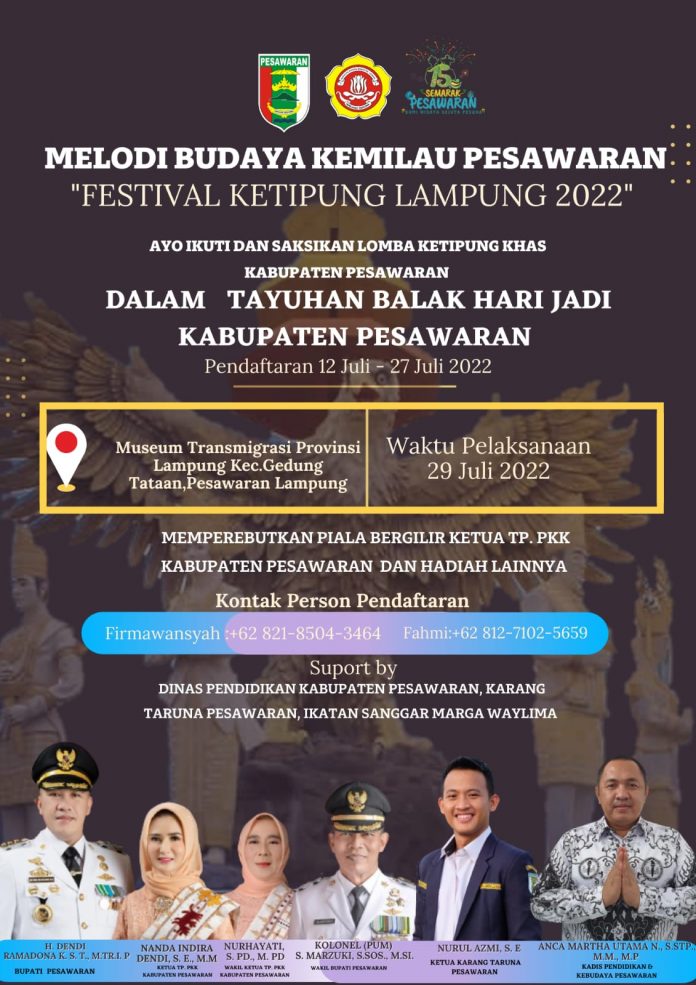 Pemerintahan – Dalam rangka HUT Kabupaten Pesawaran Karang Taruna Pesawaran bersama Dinas pendidikan dan kebudayaan akan menyelenggarakan Festival Ketipung Lampung 2022.