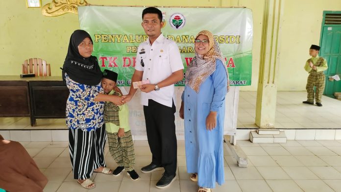 Kepala Tiyuh waisido Salurkan Bantuan supsidi Tunai kepada siswa TK dharma wanita Kepalasokolah olva noviana