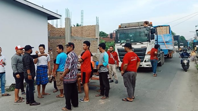 Deli Serdang-Tanjung Morawa, Beberapa Mobil tronton yang membawa Mesin krimer, barang kebutuhan untuk PT.Incofood Corporition, di hadang puluhan warga setempat diduga karena para Warga ingin bertemu Pimpinan Perusahaan guna memohon pekerjaan untuk warga sekitar perusahaan tersebut, di Dusun VI, Gg. Tambak Rejo, Desa Buntu Bedimbar, Kecamatan Tanjung Morawa, Kab.Deli Serdang, Selasa (06/09/2022).