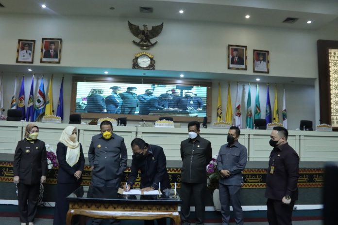 Penandatanganan Raperda Pertanggungjawaban Pelaksanaan APBD Provinsi Lampung Tahun Anggaran 2021