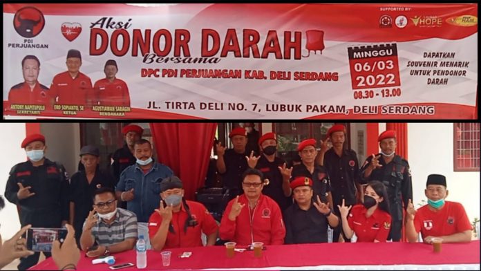 Deli Serdang-Lubuk Pakam, Pengurus DPC PDI Perjuangan Beserta Jajarannya menggelar kegiatan donor darah yang diadakan di kantor DPC PDI Perjuangan Jalan tirta deli No.7, lubuk pakam, Kabupaten Deli Serdang Sumatera Utara, minggu (06/03/2022) pukul 09:00 wib.