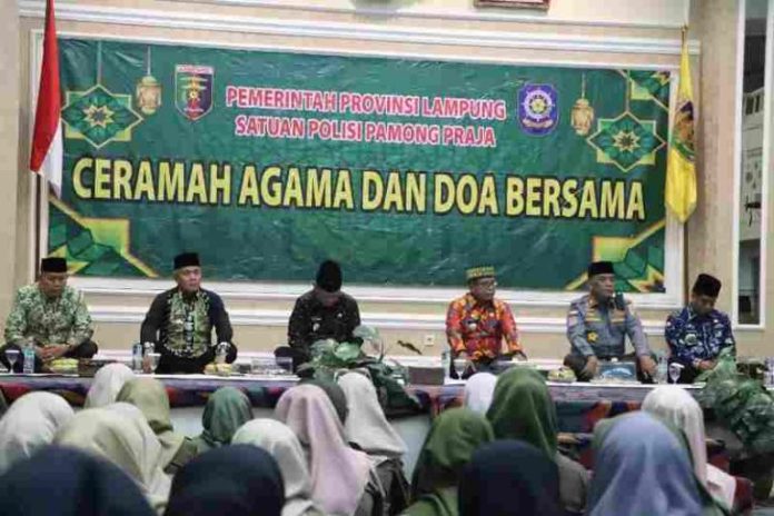 Bandar Lampung – Penjabat Gubernur Lampung, Samsudin menghadiri Acara Ceramah Agama dan Do’a Bersama Dalam Rangka Pembinaan Mental Spiritual Pegawai serta Mempererat Tali Silaturahmi antar Anggota Satuan Polisi Pamong Praja Provinsi Lampung bertempat di Balai Keratun lt. III Kantor Gubernur, Kamis (13/02/2025).