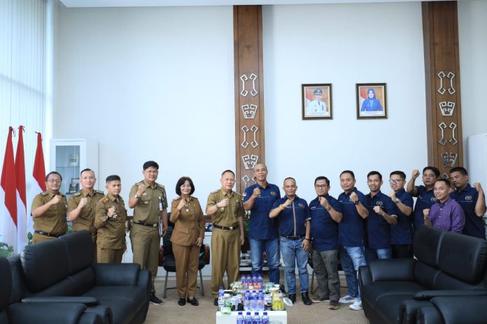 Skalapost – Penjabat (Pj) Bupati Tulang Bawang Qudratul Ikhwan menerima audiensi Organizing Commitee (OC) Konfrensi Kabupaten Luar Biasa (Konferkablub) PWI Tulang Bawang (Tuba), Senin, 29 Mei 2023.