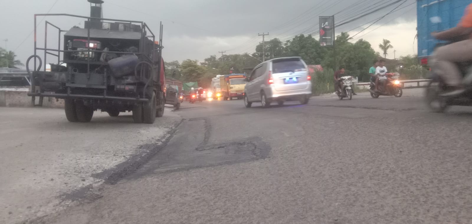 Proyek tambal sulam ruas terbanggi besar bukit kemuning bergegas lubang-lubang di tambal,saat ini sedang di kerjakan.STA Candimas dan Kecamatan Abung Kunang Lampung Utara.(1/ 12 2022)