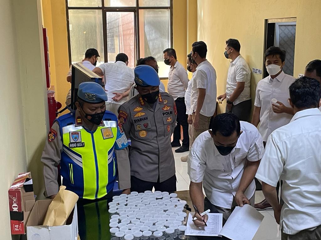 Ada sekitar 80 personil Ditresnarkoba mulai dari Dirresnarkoba Kombes Aris Supriyono hingga PNS ditest langsung dihadapan Syarhan. Yang lagi berburu alias dinas luar bagaimana? Syarhan pastikan dinas luar bukan berarti alasan mangkir test urin.